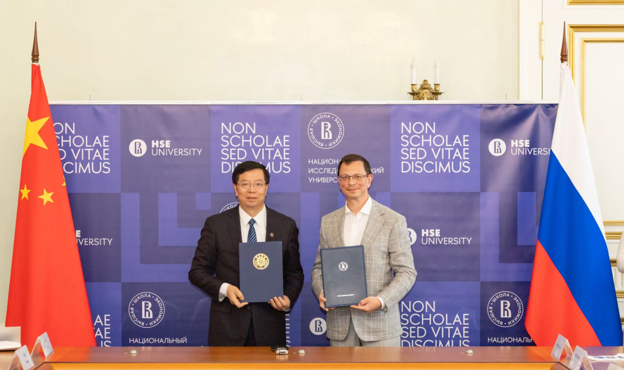 10日,邱勇访问俄罗斯国家研究型高等经济大学,与尼基塔·阿尼西莫夫(Nikita Anisimov)校长交换两校合作协议。邱勇说,中俄各领域合作面临新的历史机遇,大学应在其中发挥更加重要的作用。清华愿同高等经济大学等俄有关高校和机构进一步拓宽合作渠道,携手推动在金砖国家等多边平台框架内的高等教育合作结出更多硕果。阿尼西莫夫对清华发展取得的突出成绩表示祝贺,期待有更多本校优秀学生学者到中国学习交流。