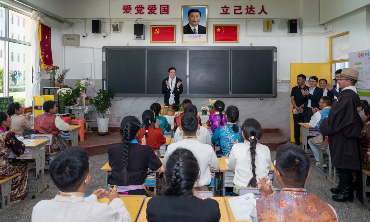 邱勇与藏族学生交流