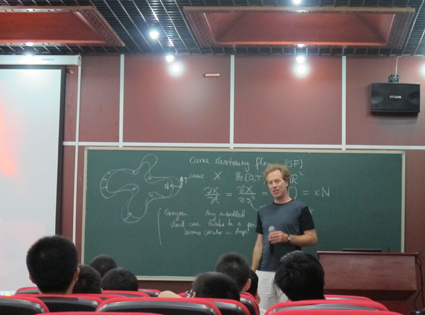 “微分几何”和“代数几何”是数学系本科教学中非常重要的两门主干课程。清华数学系的本科生很幸运,有两位国际一流学者主动提出分别为他们教授这两门课程——“微分几何”主讲教师安杰明(Ben Andrews)已在数学科学中心(以下简称“数学中心”)全职工作3年,今年3月底刚刚当选为澳大利亚科学院院士;“代数几何”主讲教师路杨格(Eduard Looijenga)是欧洲科学院院士,今年9月即将全职来清华工作。