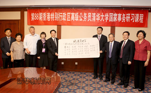 陈吉宁在致辞中说,香港高级公务员清华课程是集校内外名师、名家和政府官员等优秀师资任教的一门高质量的课程,学校十分重视该课程,并一直由一位校领导负责。他表示,清华将不断完善香港高级公务员课程内容,依托清华优质教育资源,继续深化双方的合作。陈吉宁为每一位学员颁发了结业证书。