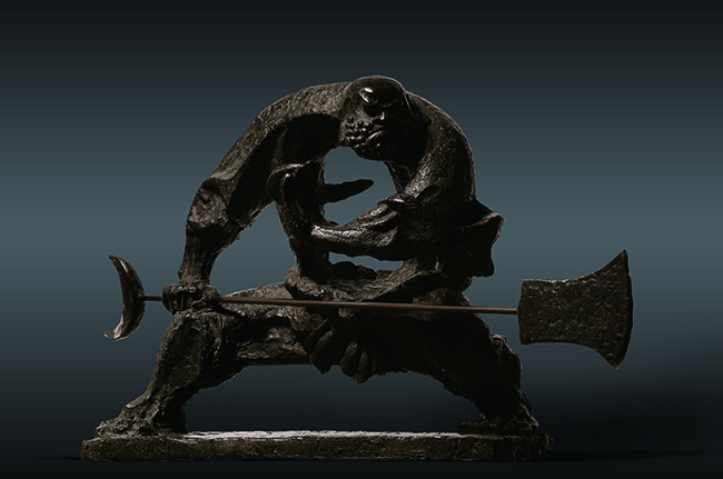 顾黎明 《持锤门神——蓝色版  195x114cm 布面油彩 2016