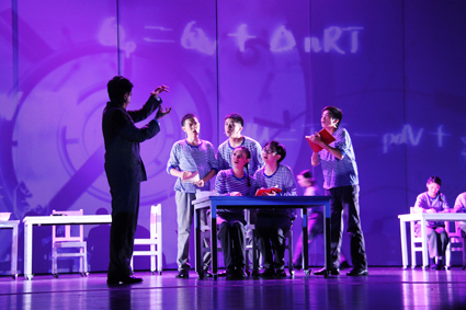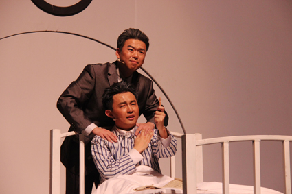 推动景片的演员们在演出结束后谢幕。 高晓蕾