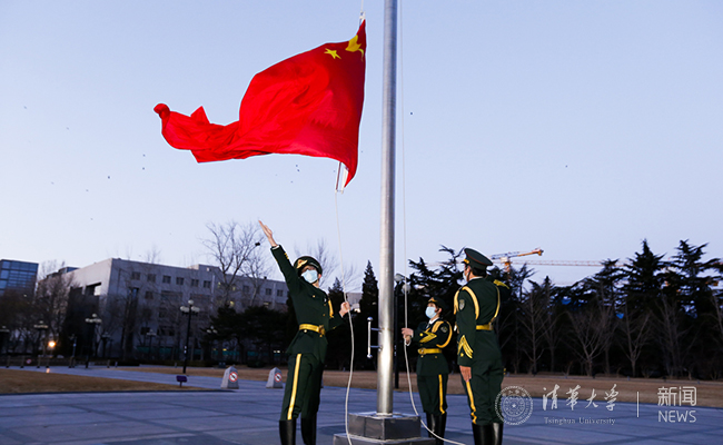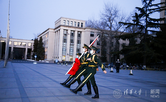 清华新闻网2月17日电 2月17日是清华开课第一天,新学期以一场特殊的升旗仪式拉开序幕。早上7时,晨光熹微,国歌庄严,鲜艳的五星红旗冉冉升起。虽然现场只有3位在校同学承担升旗工作,但是身处各地的清华师生心在一起。特殊时期的国旗更加鲜艳,凝聚着清华师生的力量,清华加油,中国加油!