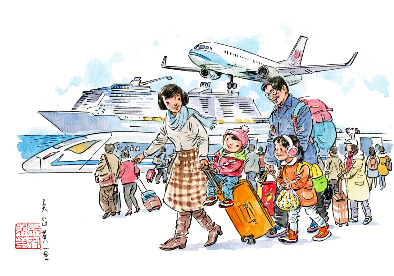 这组漫画是光明日报摄影美术部为迎接建国七十周年所作的特别策划,体现了艺术性与新闻性的完美结合。作品以轻松活泼的笔触,描摹不同年代中国家庭出游的温馨场景,反映了新中国成立70年来人民生活发生的日新月异的变化。作品主题鲜明,选取素材具有典型性,时代气息浓郁,朴素的生活情感、深深的自豪感都融入作品中,引发共鸣,亲切感人。
