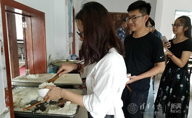 实践队员在部队食堂与官兵一起用餐。叶杨庆 摄