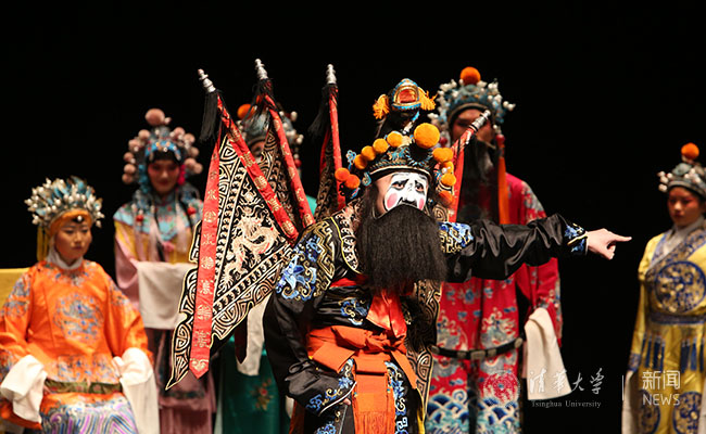 《龙凤呈祥》取材于《三国演义》中“刘备招亲”一节,是京剧经典剧目。剧中角色众多,行当齐全,且各有绝活,唱、念、做、打均有体现。全剧编排严整,穿插巧妙,张弛有道,引人入胜,具有很高的欣赏价值和排演难度。京剧队同学在专业老师悉心指导下,克服困难,刻苦练习,认真钻研,为广大观众奉献了一台体现清华人精神风貌与复建二十年里程碑式意义的高水平演出。演出过程中,观众的掌声、笑声、叫好声一浪高过一浪。