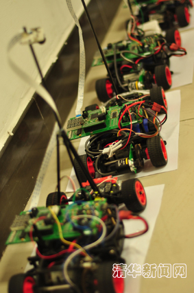 本次比赛分为传统的摄像头组和新的直立电磁组,其中摄像头组采用CCD摄像头探测识别赛道,直立电磁组在两轮自平衡的情况下采用电感耦合交变电磁场进行赛道循迹。共有来自电机系、工物系、汽车系、机械系、精仪系和航院的12支队伍挺进决赛,其中摄像头组8支、直立电磁组4支。最终,来自汽车系的“皇族队”和来自航院的“航天飞机队”分获摄像头组和直立电磁组的第一名,来自电机系的两支队伍分获两组第二名,机械系和工物系分获两组第三名。