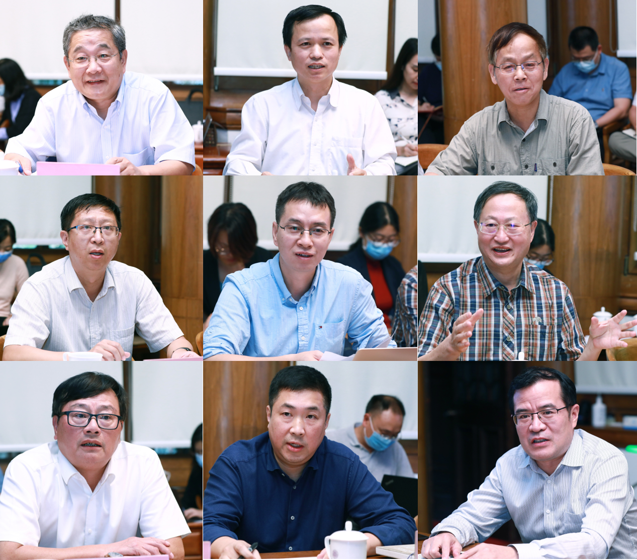 王洪涛、胡事民、庄鹏飞、陈峰、王学武、王中忱、刘立、杨冬江、石中英分别发言(从左到右、从上到下)