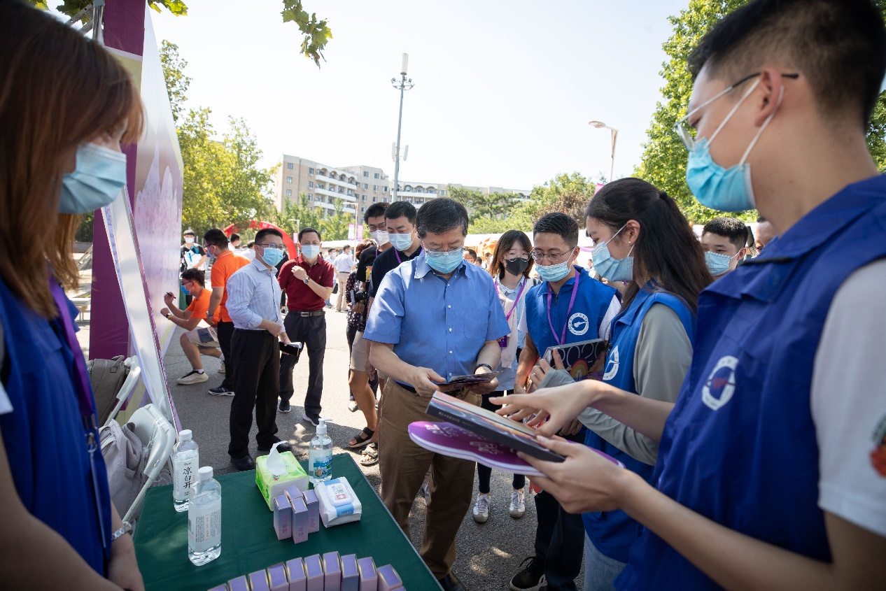 邱勇一行首先来到C楼迎新点区域,先后向行健、探微、未央、日新、致理五个书院的院长李俊峰、刘铮、梁曦东、王中忱、李艳梅询问新生报到情况和迎新流程,并与各个书院的老师同学热情交流。