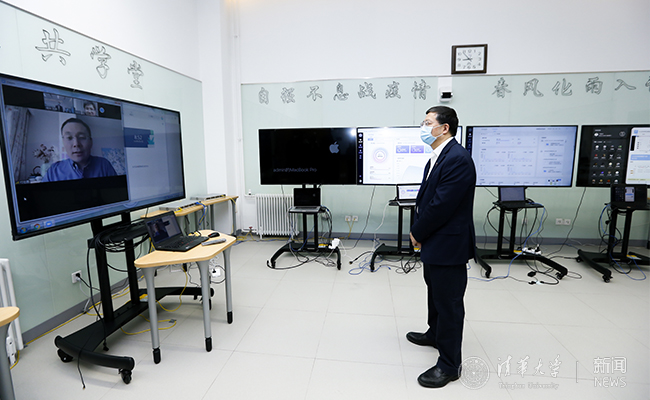 在连线中,邱勇询问了线上教学的感想、遇到了哪些困难等问题。牛艺璇一一回答:“新疆和北京有两小时时差,现在外面天还是黑的,但是网络连线还是比较通畅的,正常上课没有问题。老师准备的课程也非常有趣生动,甚至PPT都比以前看得更清楚了。”随后,邱勇表示非常理解,并对同学们表示感谢。他鼓励师生们一起努力做好线上教学,并嘱咐同学们在学习的同时注意锻炼身体。