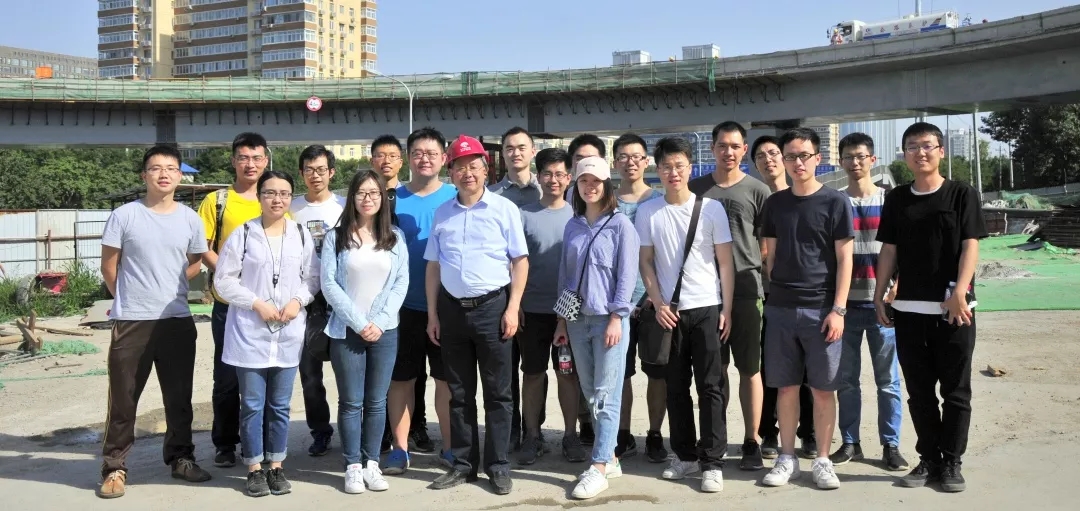 聂建国课题组在北京某组合桥现场考察时合影(前排左起3为聂建国,后排左起1为郭宇韬)