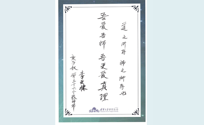 李亚栋在认真听取发言后,分享了为师、为学的几点感想。一是对待同学应信任和真诚;二是作为学生要传承手艺和思想;三是为人应勤奋,有执行力,保持自信和自律;四是无论做任何事,热爱就要付出努力。最后,李亚栋展示了为本次论坛所书的题字:“道之所存,师之所存也”,并殷切寄语青年学子:“吾爱吾师,吾更爱真理”,鼓励大家在追寻真理的道路上不断前行。