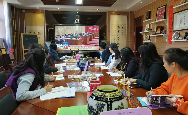 校领导和专家学者在工字厅东厅集中收看人大开幕 李派