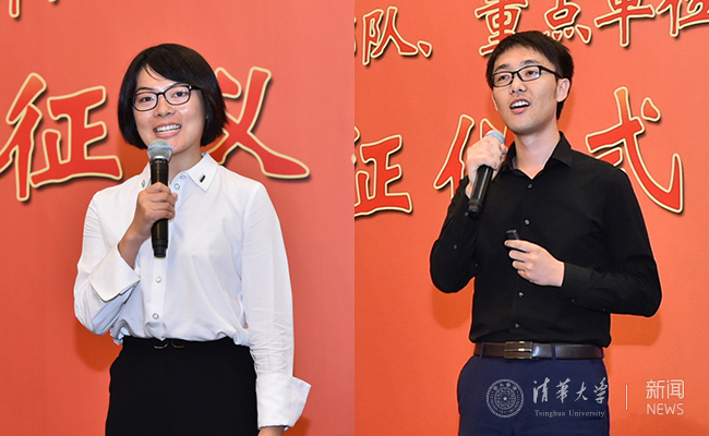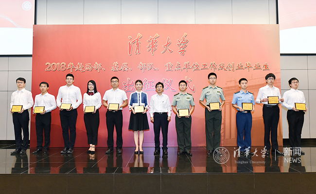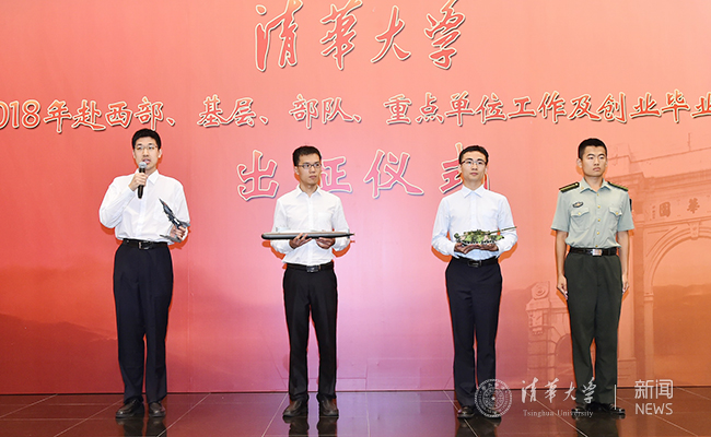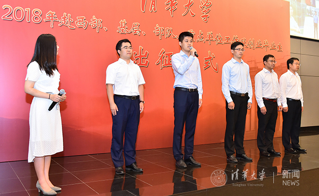 出征仪式上,经管学院博士毕业生乔丹丹代表学术就业的同学发言;新闻学院本科毕业生李亚东代表前往国际领域工作的同学发言;自动化系博士毕业生闫传博、法学院硕士毕业生林荣灿等4人分别代表前往国防、军工等重点单位工作的同学发言;经管学院博士毕业生赵闯、环境学院博士毕业生王政等5人代表赴基层公共部门毕业生进行发言。