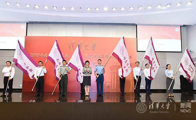 在随后举行的出征仪式上,陈旭将六面分别写有“奔赴西部,燃烧激情”“扎根基层,放飞梦想”“携笔从戎,铸我长城”“砺志空天,百炼成钢”“投身主流,青春报国”“创新创业,乘风破浪”的旗帜分别授予即将前往西部、基层、部队、航天部门、重点单位工作及创业的毕业生代表。