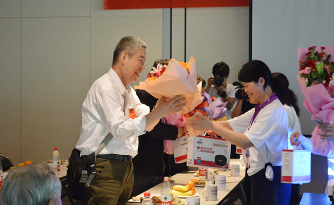 座谈会开始,主持人介绍了出席的老师并回忆了当年老师们授课时的场景,紧接着,环31 班和环32班在场校友一一介绍了各自的现状并向老师们献上鲜花,感谢老师们当年的授业解惑,感谢老师给予自己的清华底蕴以及对自己事业上的帮助。环32班校友、环境学院马永亮副教授表示,当年老师们培养的“不服输”的精神一直鼓励着自己前行。