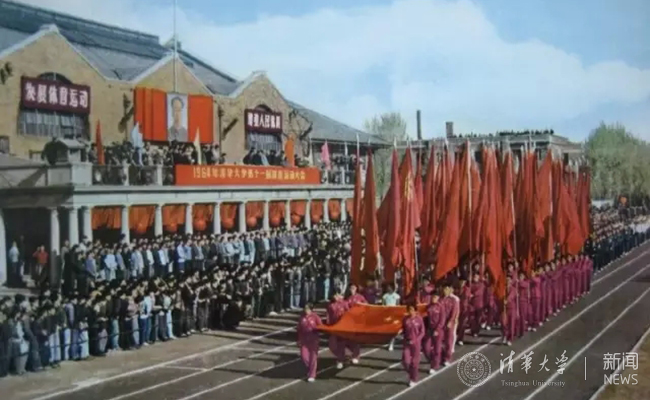 1981年,恰逢70周年校庆,清华学生军乐队在第24届田径运动会开幕式上演奏。