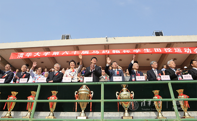 清华新闻网4月30日电(记者 程 曦 学生记者 郭雪岩 田姬熔  摄影记者 苑洁 贺施政)4月30日上午,明媚春光映衬着校庆日里一张张灿烂的笑脸,第60届“马约翰杯”学生田径运动会开幕式在东大操场隆重举行。适逢“为祖国健康工作50年”口号提出60周年,为这届“马约翰杯”增添了“双60”的美好寓意和喜庆色彩。