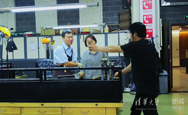 校友们多是携同家人一起来美术实验室体验艺术之美。一位小朋友激动地说:“我以前从来不知道陶瓷居然还能做成这样,简直是太有趣了!”不同实验室的艺术品各具特色,旧材新用的陶器、瓷器,绚丽精巧的金属制品、构思奇特的纤维艺术品……这些艺术品给校友带来了强烈的视觉冲击,和艺术创造的全新体验。