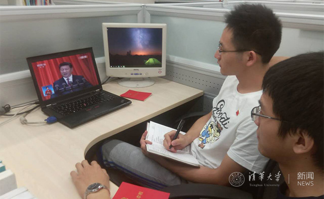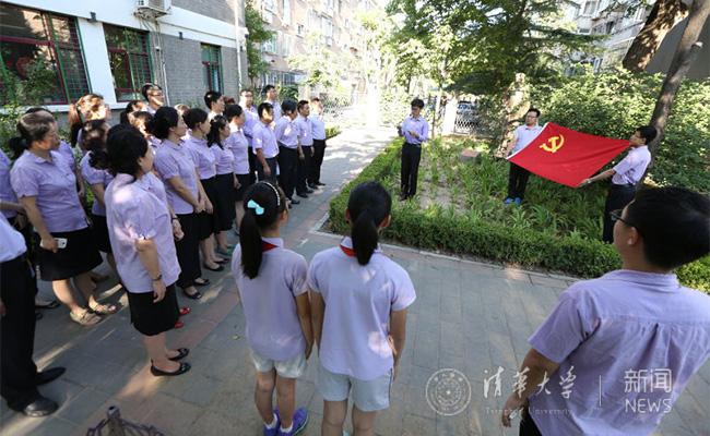 今天,学校27000多名党员,在胸前共同佩戴上党旗徽章。他们中,有奋斗在教学科研一线的教师,有默默奉献的后勤工作者,有莘莘学子,也有耄耋老人。这一天,我们共同纪念党的生日,让鲜艳的党旗徽章飘扬在清华园。
