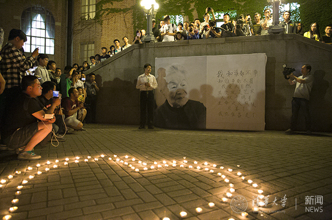 清华新闻网5月26日电 2016年5月25日凌晨,杨绛先生因病去世,享年105岁。25日当晚21:00,清华师生自发来到先生挚爱的清华图书馆老馆前广场,点燃蜡烛,敬献鲜花,寄托哀思。