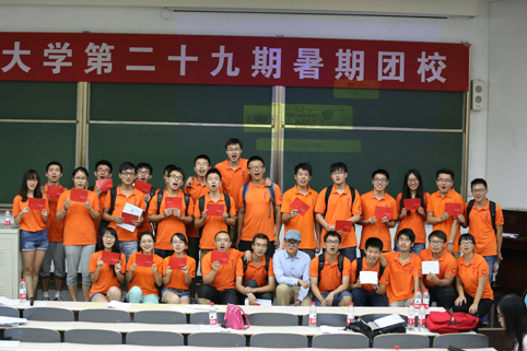图为暑期团校结业典礼上,同学们兴奋的展示结业证书。