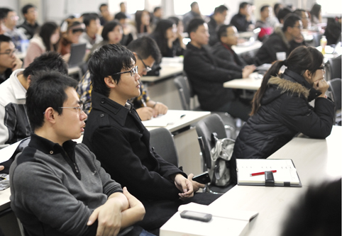公管学院一层报告厅师生观看十八大直播现场。