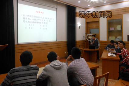 在活动第二个环节中,精仪系与汽车系的国防知识竞赛分必答题、抢答题、综合题和风险题4个环节,竞赛题目丰富多样,“说出十大元帅、十大将军的名字”、“列举古代三十六计的名称”等别出心裁的题目,拓展了同学们的知识面。各参赛队员凭借丰富的国防知识储备和精彩的回答赢得了阵阵掌声。队员在场上积极作答,班里同学在场下认真思考,献计献策。现场气氛活跃,精彩纷呈、高潮不断。最后,精仪系以微弱优势获得胜利。