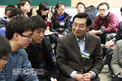 图为胡和平参加化工系学习党的十八大精神党团支部1+1集中组织生活。智斐 摄