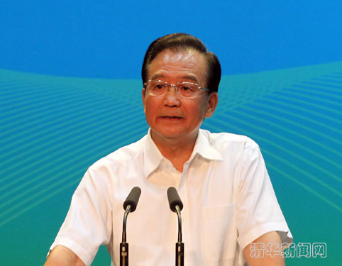 图为温家宝在大礼堂发表演讲。记者 郭海军 摄