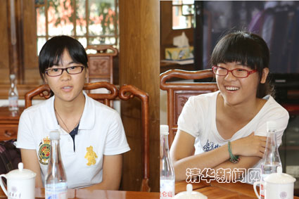 来自陕西的双胞胎姐妹杨静怡、杨静悦首先发言,她们说,自己怀着既好奇又忐忑的心情来到清华园,看到了美丽的校园,见到了敬仰的大师和很多优秀的同学。姐妹俩表示,要珍惜在校园的时光,珍惜与大师、同学相处的机会,不断充实和提高自己各方面的能力。