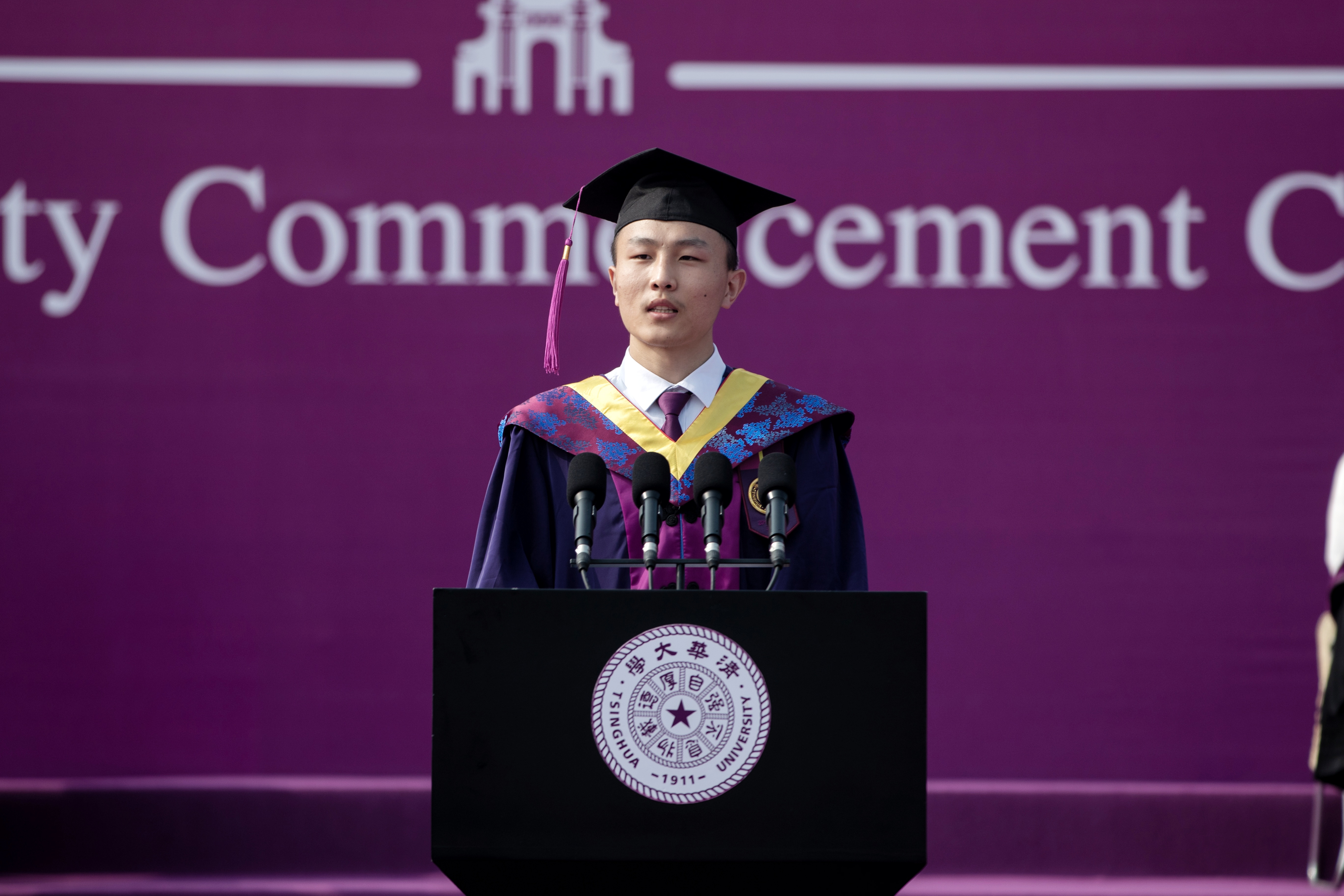 四年来,清华成为了更好的清华,110周岁的她风华正茂,正向着世界一流大学前列迈进。这四年,我们一起见证二校门焕然一新,科学博物馆开箱亮相;一起摇完了阿甘,参加了游泳测试;一起看完最后一次熄灯,听完音乐节的《后会有期》……终于走到今天,我们穿上学位服,齐聚在一起,相信大家各有感触。回望我的大学四年,我把它总结为带着理想的长跑。
