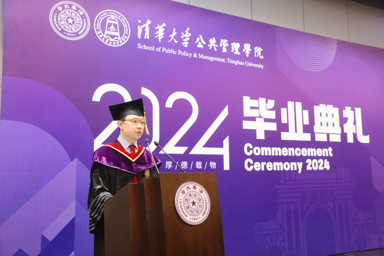 朱旭峰在致辞中表示,公管学子在数字智能时代要秉持“迭代思维”,在变革中求发展,在迭代中谋突破。迭代思维鼓励敏捷决策。在不断变化的公共治理领域,同学们需要具备迅速响应、灵活调整的能力。迭代思维鼓励持续创新。同学们需要在实践中不断尝试、不断优化,通过累进式的行动,逐步逼近问题的核心。迭代思维鼓励前瞻布局。同学们不仅要追求事务处理的效率,还应洞察社会发展脉络和国家发展战略,以实现国家长期的发展愿景。祝愿同学们能够成为推动社会进步和国家富强的创新者和引领者,不断追求卓越,为建设更加繁荣美好的世界贡献自己的力量。