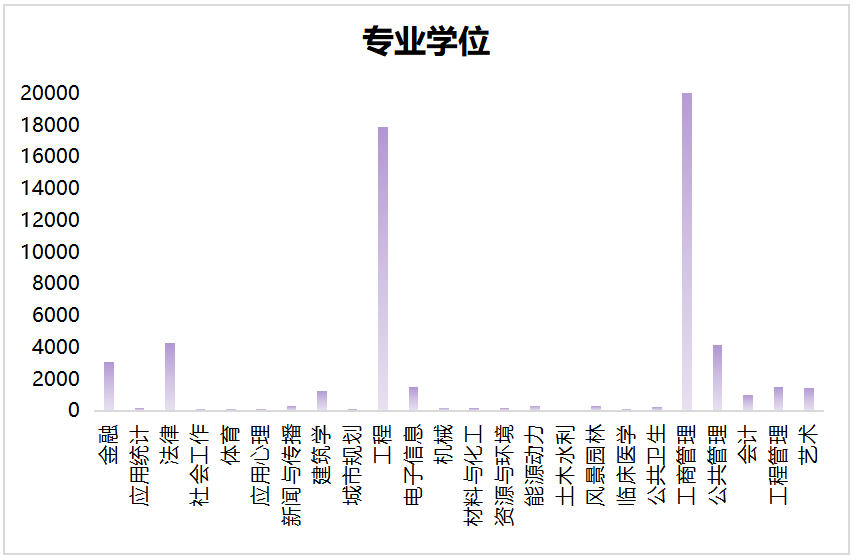 六、 专业硕士学位获得者在各学位类别的分布情况